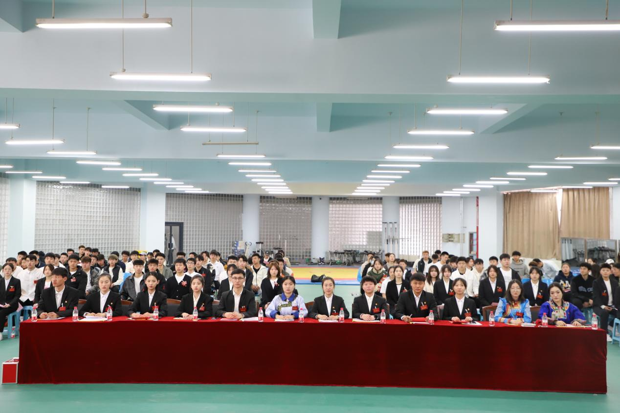会议由团总支兼职副书记刘竞予主持,bg大游官方网站党总支书记温毅刚、经理王文杰教授、副经理李慧君教授、副经理刘忠良副教授、团总支副书记赵郑、专职辅导员呼日查、专职辅导员刘紫薇出席会议并在主席台前排就坐,公司162名同学参加本次会议。