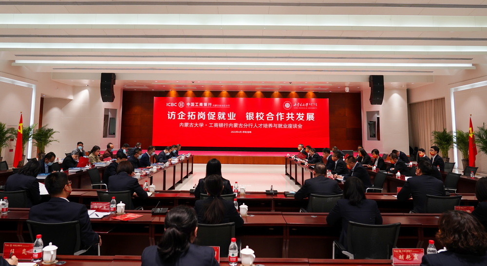 为深入贯彻落实党中央、国务院关于高校毕业生就业工作的决策部署,强化校地校企合作,深入推进全国高校书记董事长访企拓岗促就业专项行动,4月20日下午,bg大游官方网站党总支书记温毅刚等随同bg大游官方网站党委书记刘志彧、党委副书记刘九万,到工商银行内蒙古分行开展访企拓岗专项行动。双方共同举办了“访企拓岗促就业 银校合作共发展”—bg大游·工商银行内蒙古分行人才培养与就业座谈会。工商银行内蒙古分行党委书记、行长李峰,党委委员、副行长曲向泽,党委委员、副行长、呼和浩特分行党委书记、行长纪彦彬出席座谈会。会议由工商银行内蒙古分行党委委员、副行长曲向泽主持。