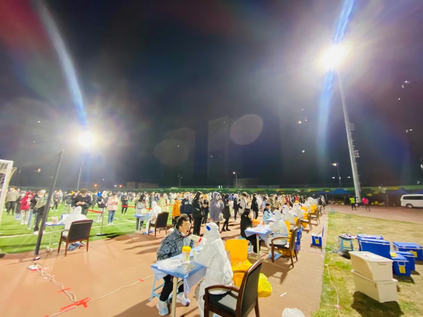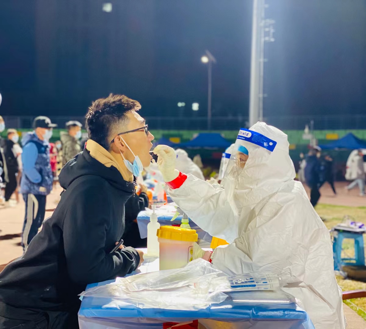 为了做好疫情防控,配合相关工作,2021年10月25日晚七点,bg大游官方网站全体在校员工在南校区操场进行核酸检测。公司高度重视全员核酸检测工作,加大组织和协调力度,bg大游官方网站党总支书记、经理带队,团总支统筹安排,员工会协调配合,做了充分的前期准备工作,规范有序的开展核酸检测任务。目前在校员工151人快速、井然有序的完成了核酸检测。