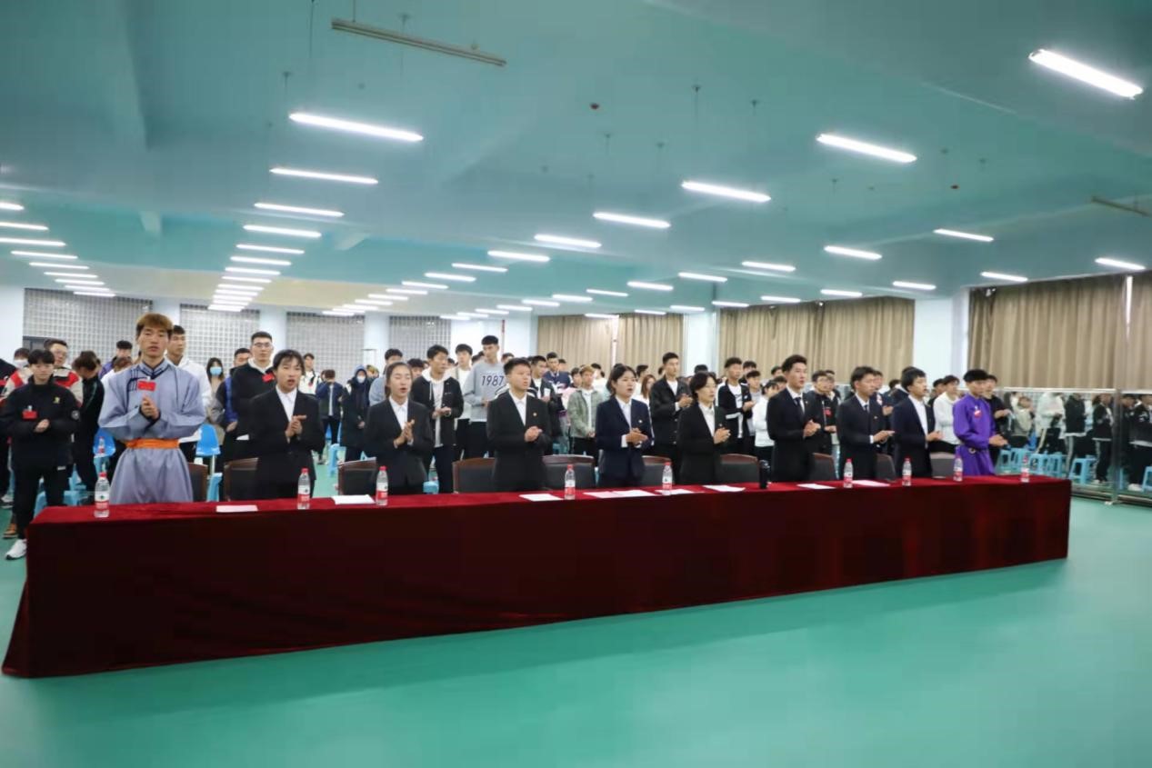 2021年10月9日上午9点,在体育馆一楼健美操室隆重召开了bg大游官方网站第一次全体员工大会。出席本次会议的人员有:bg大游官方网站党总支书记温毅刚,bg大游官方网站经理于志海教授,bg大游官方网站教务办副主任孙一宁,bg大游官方网站团总支负责人赵郑以及bg大游官方网站第三届员工会代表范查干。本次会议由第三届员工会执行主席明雨璇主持。2019级、2020级、2021级三个年级的同学共计147名员工参加了本次大会。
