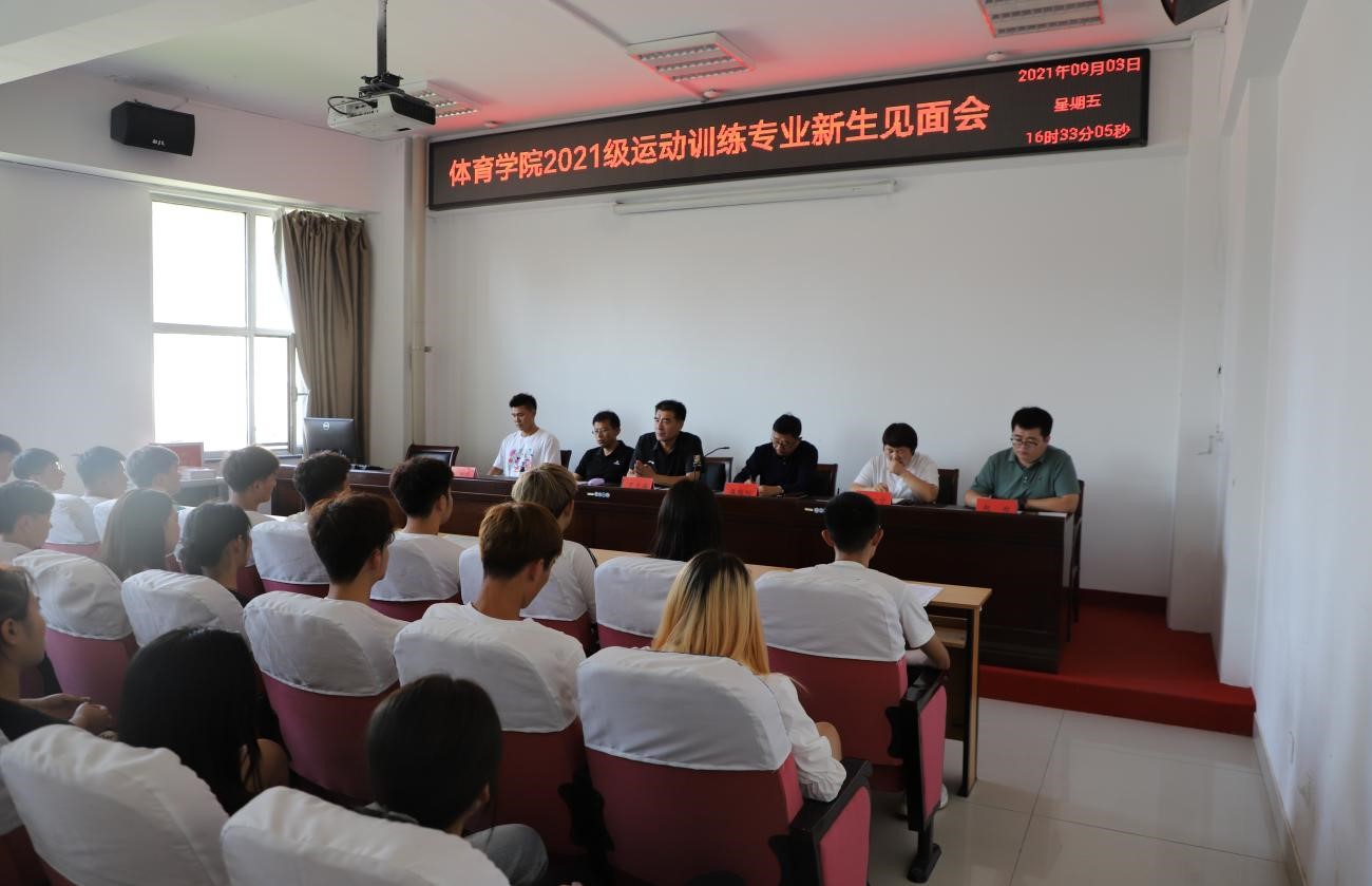 9月3日下午16点,bg大游官方网站在南校区体育馆举行了2021级新生见面会。bg大游官方网站党总支书记温毅刚、经理于志海以及办公室主任兼运动训练专业教研室主任孙吉旺、教务与科研办公室主任孙一宁、2021级运动训练专业班主任沈长明出席了大会。会议由赵郑主持,全体2021级新生参加了此次见面会。