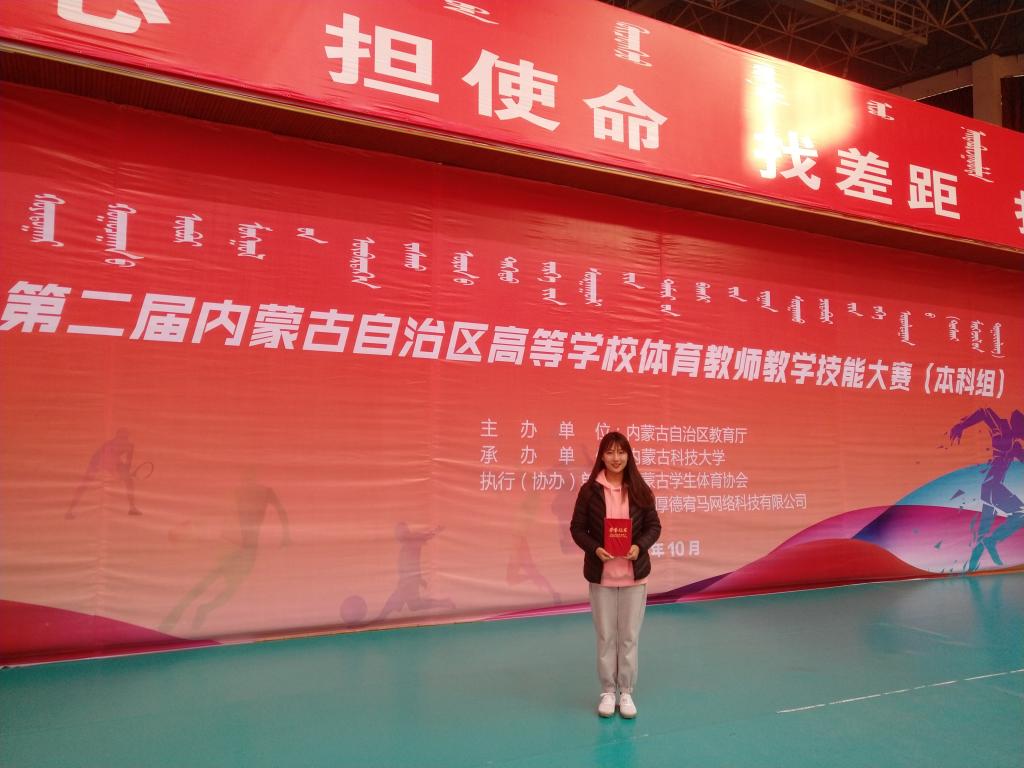 内蒙古自治区第二届体育教师技能大赛日前在包头落下帷幕。bg大游官方网站共派出三名教师参加了比赛,经过两天激烈的角逐,公司三名教师都取得了优异的成绩。其中马卉同志获得了内蒙古自治区高等公司体育教师技能大赛本科组一等奖,杨臣同志和包牧人同志获得内蒙古自治区高等公司体育教师技能大赛本科组三等奖。