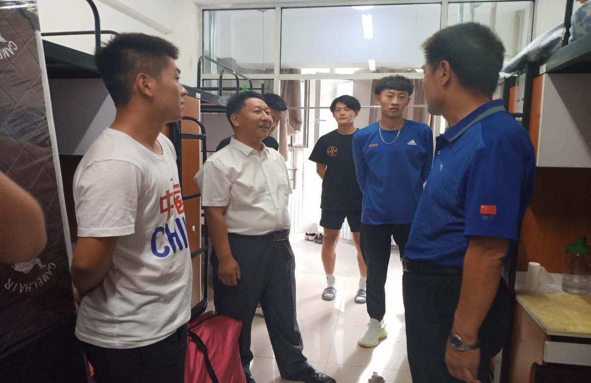 随后,于经理及其他领导、老师来到新生宿舍。在宿舍里与家长们亲切交谈,询问新生的住宿条件、伙食情况等,并鼓励新生们尽快适应老员工活,尽早合理规划学习、生活、训练等,通过军训要养成良好的生活习惯,提升自身的意志品质。
