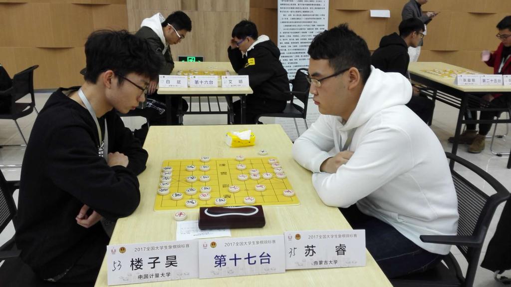 此次比赛有37所高校21个代表团共110名选手参赛,部分高校派出了象棋特招生,其中有十几位国家级象棋大师。公司派出4名队员参赛,领队是象棋通识教育选课教师李惠民,队员分别是化学化工公司的赵欢(女)、电子信息工程公司的白睿、生命科学公司白斌、生态与环境公司苗琪。