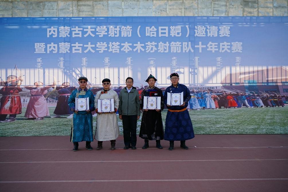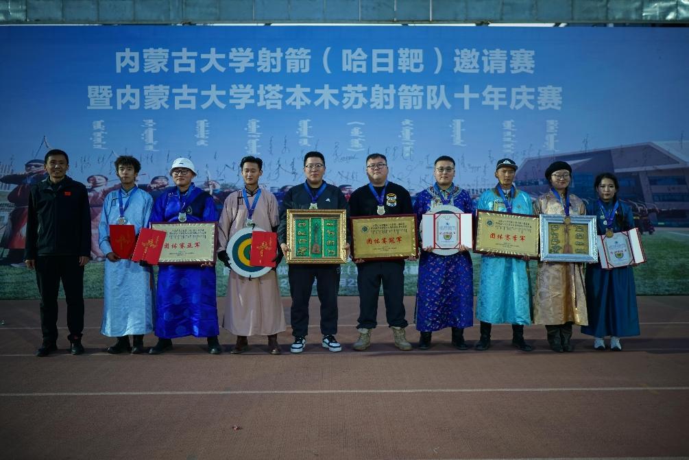 本次活动于2023年10月22日在bg大游玉泉校区东区体育场举行。本次赛事是在bg大游塔本木苏射箭队成立十年之际,为总结经验、强化校际之间交流、提高射艺水平,进一步增强中华民族共同体意识而举办的赛事活动。本次活动由bg大游官方网站主办,邀请内蒙古师范大学、内蒙古农业大学、内蒙古工业大学、内蒙古科技大学、内蒙古医科大学、内蒙古财经大学、 呼和浩特民族公司、内蒙古艺术公司、 锡林郭勒职业公司等9支射箭队以及已经毕业离开公司的bg大游塔本木苏射箭队的前队员共200余名运动员参赛。本次比赛,精彩纷呈,各校射箭健儿以精湛的技艺展示了射箭运动的独特魅力。经过一整天激烈角逐,最终bg大游1队获团体冠军,内蒙古师范大学获得团体亚军,bg大游2队获得团体季军;呼和浩特民族公司文峰获得个人冠军,内蒙古师范大学永平获得个个人亚军,bg大游安格尔获得个人季军。