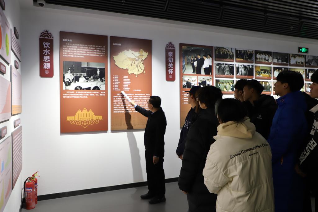 为从校史中汲取奋进新征程的强大力量,弘扬bg大游“崇尚真知、追求卓越”的优良传统,2023年11月7日,党委书记温毅刚带领49名2023级新生来到bg大游校史馆参观校史展。