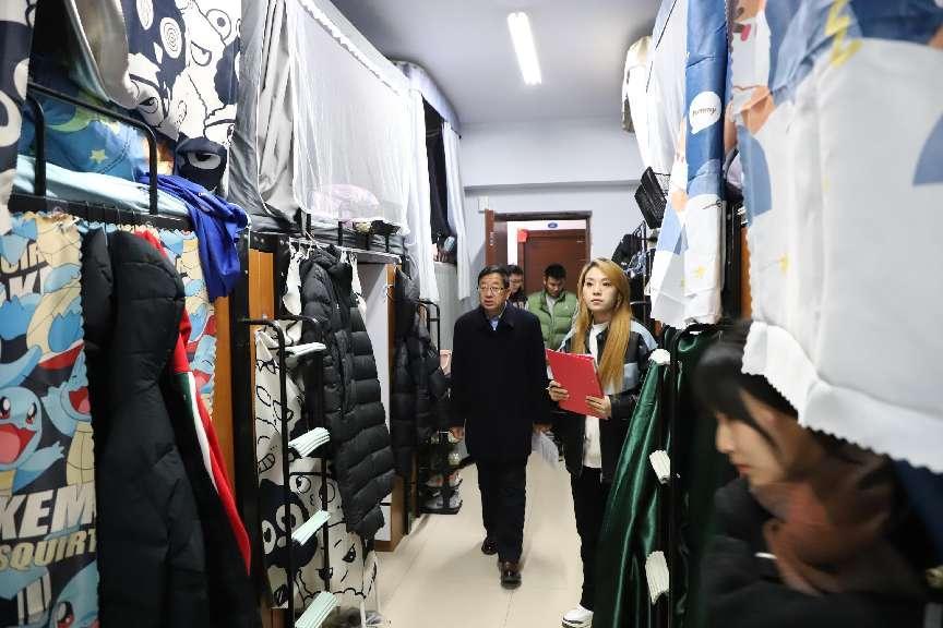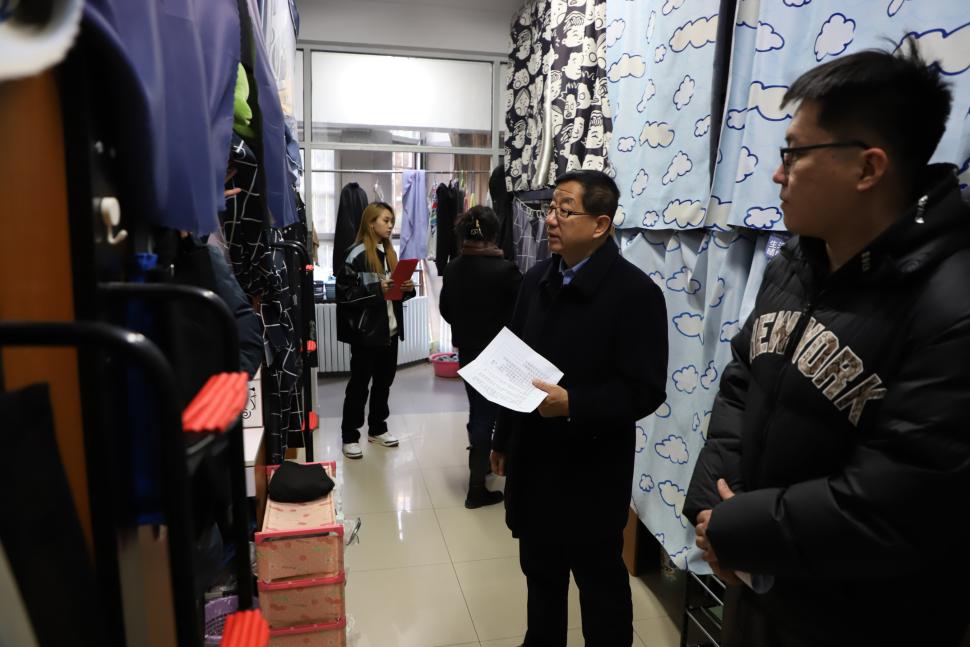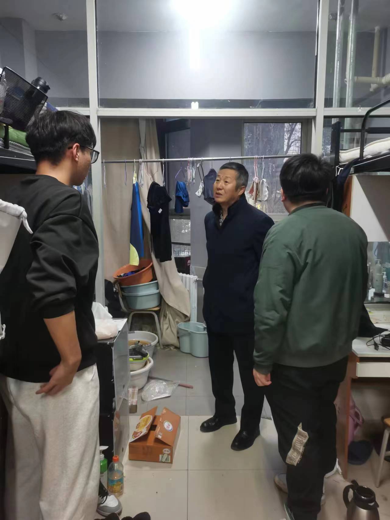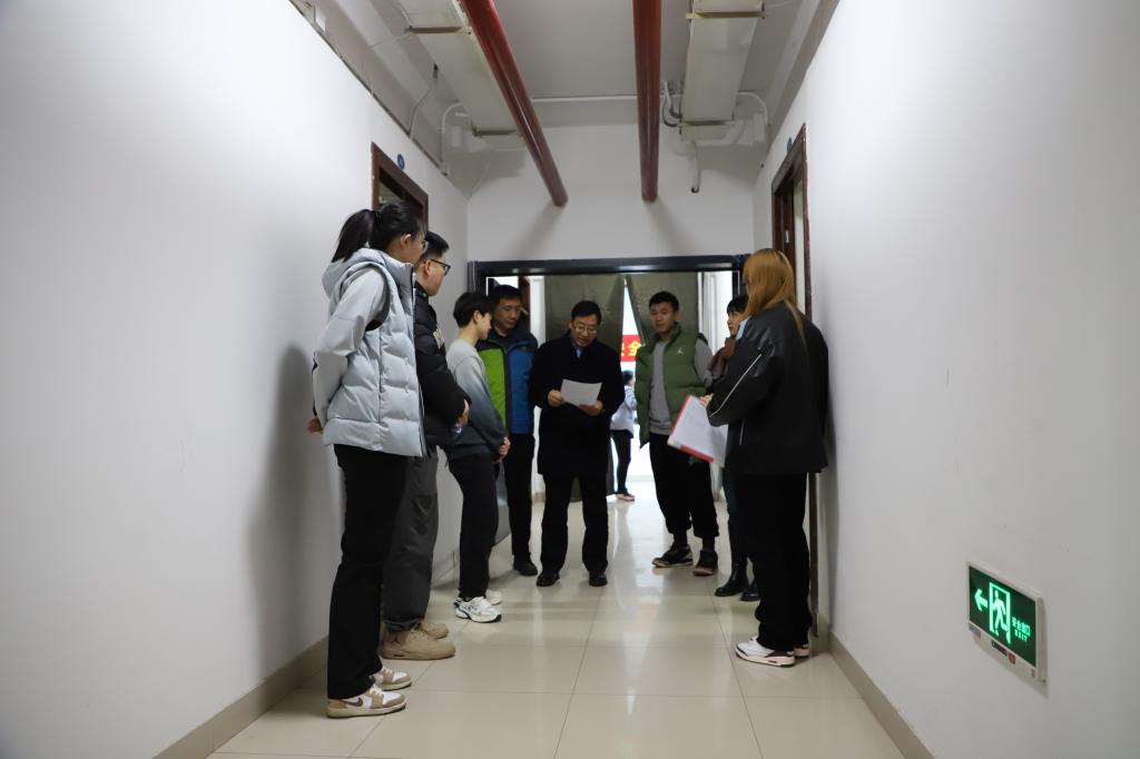 2023年11月19日,公司领导班子带队,与辅导员、班主任对员工宿舍进行安全卫生检查。