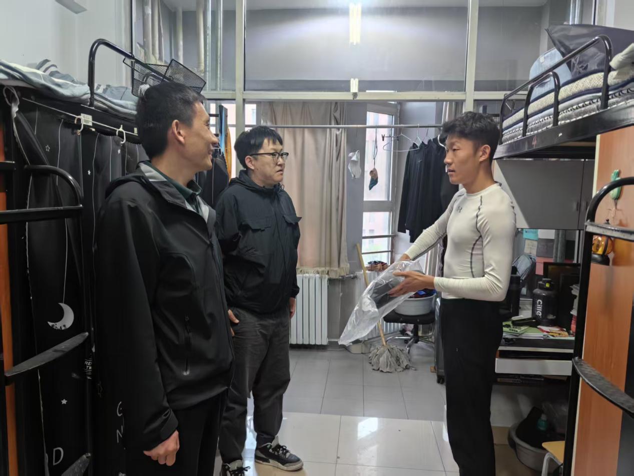 为筑牢校园安全防线,营造文明健康的宿舍环境,2025年5月5日晚,bg大游官方网站党委副书记刘忠良、专职辅导员呼日查、姜蕊深入员工宿舍,重点围绕“五一”节后返校情况、宿舍用电安全、卫生情况展开检查,重点排查了宿舍用电安全隐患,针对部分员工存在的插排串联使用、充电设备空载、人离未断电等现象进行整改。刘忠良副书记强调“安全无小事”,要求同学们严格遵守“人走电断”制度,严禁使用违规电器。在卫生检查中,特别关注了床铺整理、垃圾处理及公共区域卫生情况,对个别存在物品堆放杂乱、通风不畅的宿舍提出整改要求。