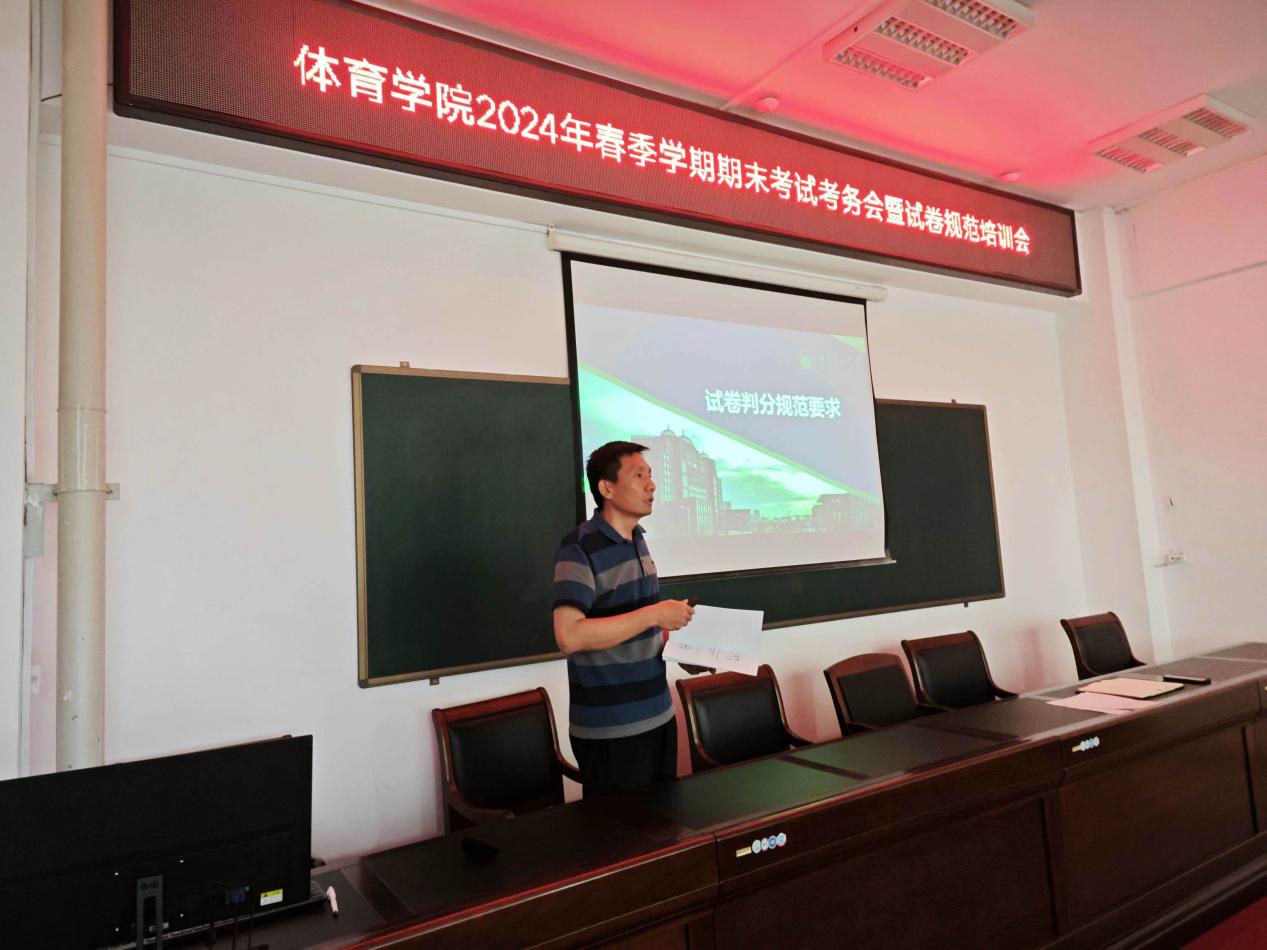 2024年6月6日,bg大游官方网站2024年春季学期期末考试考务会暨试卷规范培训会在205会议室召开。副经理刘忠良细致解读了期末试卷批阅工作的要求,强调试卷成绩评定和课程考核档案管理规范,并对2024年春季学期期末考试工作做了部署。